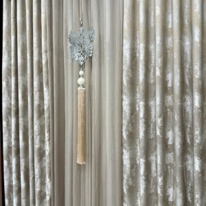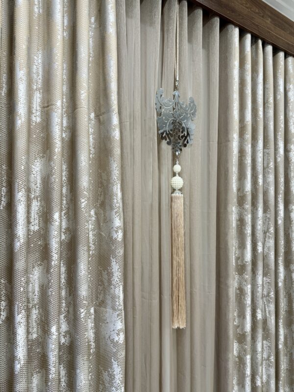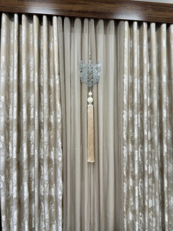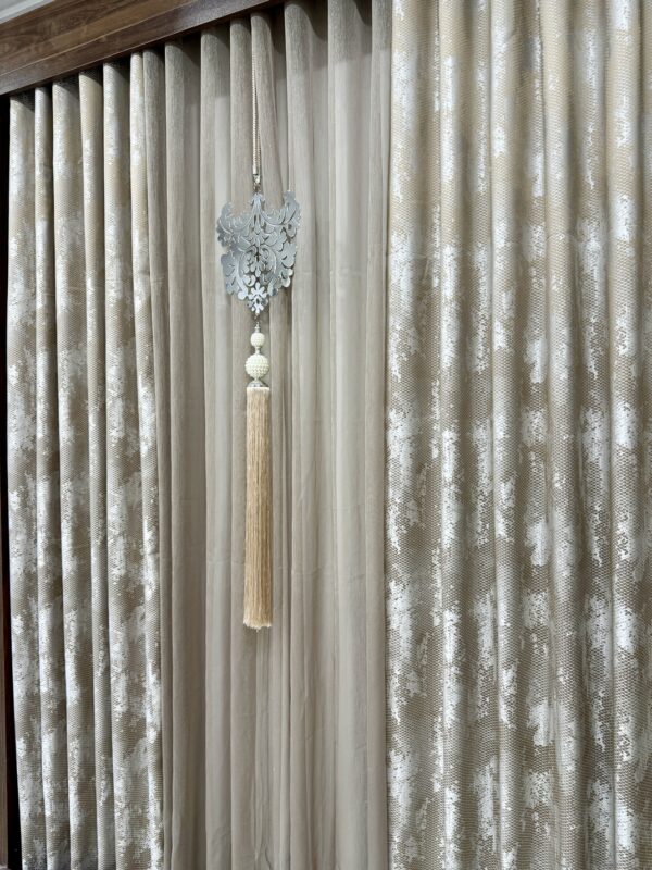 Rideau prêt à poser grège – 5m de large, 2,8m de hauteur, composé de trois panneaux : deux grège et un grège au milieu. Installation facile et rapide. Apportez élégance et douceur à votre intérieur pour seulement 129 DT.